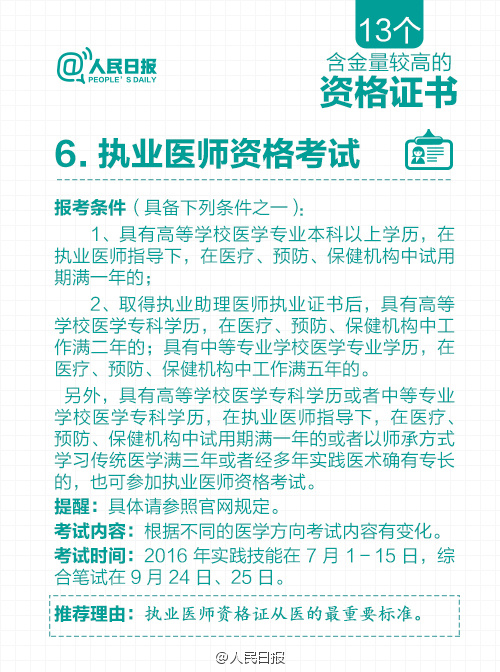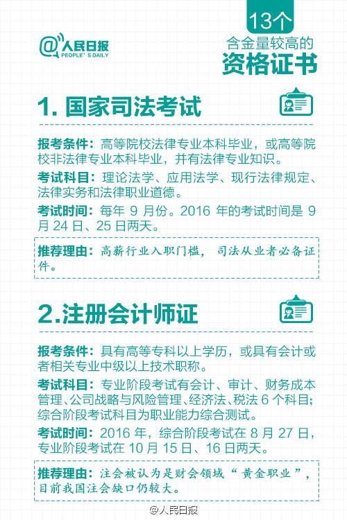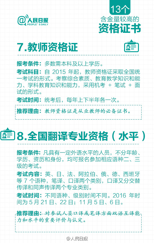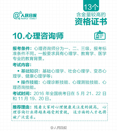 根据国务院一系列取消职业资格许可和认定事项的决定,原有保留的职业资格证书含金量进一步提升。那么,现在还有哪些含金量高的职业资格证书?获取资格有哪些要求?资格认定考试都考什么内容?……含金量较高的13个资格证书↓快快记下来吧!