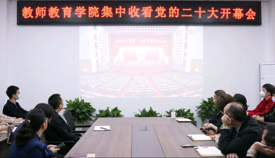2022年10月16日上午10:00,中国共产党第二十次全国代表大会在北京人民大会堂隆重召开。外围买球的app十大平台师生代表在博文楼206A会议室集中观看了开幕会现场直播盛况,认真聆听了习近平总书记代表第十九届中央委员会向大会所作的报告。