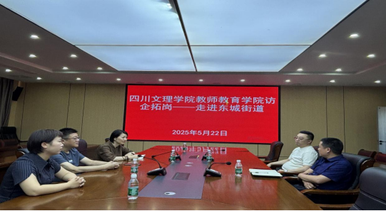 为深入贯彻落实教育部“访企拓岗促就业”专项行动要求,进一步深化校企合作,拓展学生就业渠道,促进毕业生更充分更高质量就业,5月22日,学院院长黄培森带队,党委副书记王文娟、副院长赵栅凌、专职辅导员杨文明一行赴达州市通川区东城街道办事处实地走访调研。