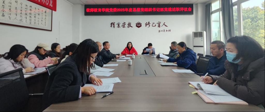为进一步压紧压实基层党建工作责任,提升党支部建设质量,2026年1月13日,学院党委在博文楼206A会议室组织召开2025年度基层党组织书记抓党建述职评议会。会议由学院党委书记王晶主持,学院党委委员、全体党支部书记及支部委员,教师党员代表参会。