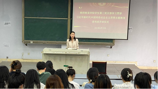 2023年4月17日,外围买球的app十大平台学生第二党支部在博文楼112教室举行了学习贯彻习近平新时代中国特色社会主义思想主题教育读书班开班仪式。学生第二党支部书记文娟,支部委员赵会辉、杨文明以及在校学生党员参加了此次开班仪式,本次开班仪式由文娟书记主持。